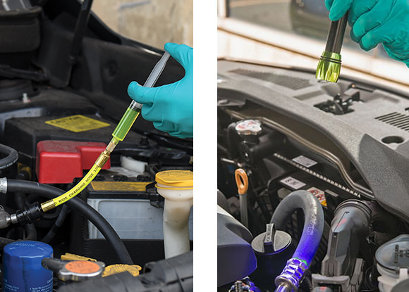 Las jeringas desechables LeakFinder® SOLO-SHOT™ están diseñadas para inyecciones rápidas y fáciles. Cada jeringa está precargada con la cantidad correcta de tinte para la aplicación. No hay medición involucrada y no hay pérdida de tinte debido a derrames.